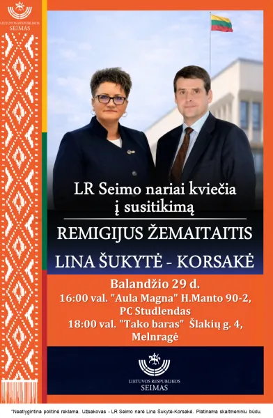 LR Seimo nariai kviečia gyventojus į susitikimą.